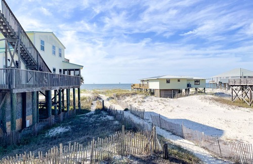 Unit 046 - Our Beach House - This house is waiting on you to bring the family and it provides the fun! Sleep 10 in this charming, Non-Smoking, beach house located on the desired West end of Dauphin Island, Alabama's beautiful barrier island! 3rd tier gulf home has large gulf-facing deck, open floor plan, large flatscreen tv, dining for 10, and accommodating kitchen. 3BR and 2BA with day bed in the Master along with the King, ensuite bath with separate vanity area, and hall bath accommodating the 2nd BR (queen) and 3rd bedroom (full and twin). Laundry area in hall and charcoal grill below deck. Plenty of natural light as the south side of the house is windowed and has double windowed french doors offering you a fantastic view of the Gulf. Island attractions include putt putt mini golf, estuarium at the sea lab, Civil War-era fort, fish market, bakery, shoppes & boutiques, and restaurants. Bike path the entire length of the island. Linens provided.