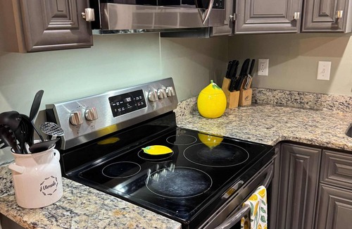 **We hope you find time to enjoy the above-ground pool, open now until October 1st! Please note that it's not heated. Reach out if you have questions.*** Inside, kick up your feet in front of the 50-inch Roku TV with endless entertainment options. Our house is decorated with red, white, and blue and is a true celebration of the stars and stripes! The property includes 2 units. As you walk from the driveway to the entrance, you will reach the front patio. There is a bench and two chairs out front, as well as a small table with a barbecue grill. To your left, is the rear entrance of the house that has a digital lock for easy and secure access. Once in the house, there is a full bedroom on your left complete with 2 luggage racks, 2 end tables, and 2 USB lamps. Past the full bedroom is a bedroom with a trundle bed with 1 twin-bed, 1 end table, 1 USB lamp, and 2 luggage racks. To the right, you will reach the washer and dryer as well as a futon, 1 end table, and 1 lamp. To the far right, you will find a short hallway. On the first left down the hallway, there is a bathroom with a full shower and tub. On the first right down the hallway, you will enter the dining room which has a six seater table with six chairs as well as an additional 2 chairs that you can utilize. Straight down the hallway, you reach the kitchen. In the kitchen, there is a Dishwasher, Fridge, Blender, Coffee Pot, Microwave, Stove and all items you will need to make your favorite dish (including an additional 2 seater table for your morning coffee). Next we Enter a fork in the road. To the Left:Is the secondary entrance for this location. To the Right Is the Living Room with a sectional couch, two end tables, two lamps, accent charis, 50 Inch Roku TV, and an additional 4 seater table for those who like to watch the game at the table. Upstairs you will find the second full bathroom to your left, the Patriot Room with a bunk bed straight ahead, and off the hallway to the right is another full-size bed bedroom and the King master bedroom with ensuite bathroom and walk-in closet Walking into the Cozy Oasis (the second unit) you will be greeted with a guest book - please sign your name, we love to see where people are visiting from! You'll see the living room with plenty of seating and TV. There are an additional 3 bedrooms on Side B , a queen, a king, and a full. Each bedroom has USB lamps to make charging your devices a breeze, and luggage racks to store your belongings. The bathroom is a full bathroom with a shower/tub combination. The kitchen has a table that can seat four comfortably, and is full of the amenities you need to cook a delicious meal, or make sandwiches on your way out the door to the Space and Rocket Center! NOTE: we have weekly maintenance and cleaning performed on our pool. The pool services do not take long and will not disrupt your stay. We will need access to the yard/pool area if you stay with us on service day. Thanks for understanding!