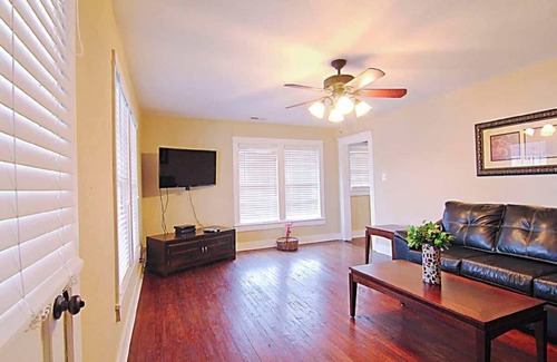 This neighborhood is very safe and is located downtown so you are able to walk to everything you need and alot of what a person would want while visiting our city! Only a few blocks to several businesses, Library, Post Office, Wilson Park, and over 50+ restaurants & shops etc.!