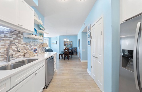 The fully equipped kitchen offers everything you’ll need to prepare a five-star meal, including granite countertops, side by side refrigerator with water/ice dispenser, smooth top cooktop, and more! The dining area features seating for 8-10, with an elegant table fit for a feast! You will love waking up to the magnificent view from the elegantly furnished master suite, which boasts a king bed with luxurious linens and bedding, a premium mattress, a brand-new LED television and its own access to the beachfront balcony! The ensuite bath features a gulf front elevated 2-person jetted tub, a separate glass and tile shower and double vanities. The additional bedrooms are equally sophisticated, with king bed and luxury accents in the second bedroom and one queen and twin bunk beds in the third bedroom. Each bedroom offers an attached bath, and deluxe bedding and mattresses.