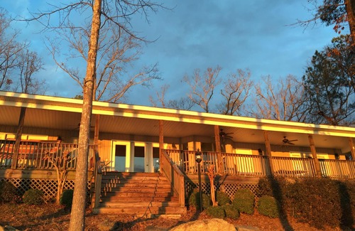 Sunset Station is a ranch home located on the point of Sunset Cove, Lake Martin, AL. We are 30 miles from Auburn University. The sun will set and rise on the dock which is 30 feet from the back porch. The back porch has a BIG lake view and is the length of the house. There is a hammock on the way to the dock that is nice for reading and enjoying the sounds of Lake Martin. You will see sailboats, pontoon boats, bass boat, ski boat and a pontoon plane on the lake. The wildlife is amazing: you will see loons, duck, fish jumping, deer, geese and much more. We have a bald eagle on the lake I see often. Here on the lake you may see a snake, non-venomous scorpion, turtles, and coyotes; you can’t beat the wildlife sightings. You will have access to the canoe. Coffee in the morning will never be the same, forever memories of your stay at Sunset Station because of the big water view and closeness of the water. There are many restaurants on the lake with live music. Easy to catch fish off the dock. We have handrails down to the the dock for easier access to the water.