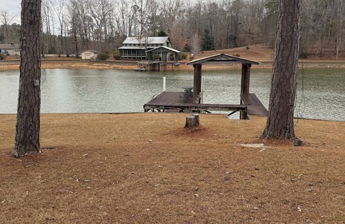 Located in Jacksons' Gap, this charming cabin has the epic water views you’re looking for with a huge lot located on a point to give you 180 stunning views of Lake Martin. The house includes 2 bedrooms, one with a queen bed and the second room includes a twin bed, and twin bunk bed, guests will find the space cozy and inviting. The cabin offers heating, AC, WiFi, outside grilling area. The closest boat launch is Dare Power Park with only a 6 minute drive.