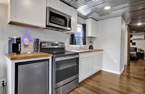Experience a delightful stay at this ultra-modern container home, located near Wheeler Lake in Athens, AL. This newly built container home offers a sophisticated, radiant, and cozy ambiance. The place is thoughtfully designed with top-notch furniture and numerous modern features. It boasts 1 bedroom, a well-maintained bathroom, a spacious living area, and a fully equipped kitchen. . This container home is centrally located, providing easy access to various attractions and amenities in Athens, AL