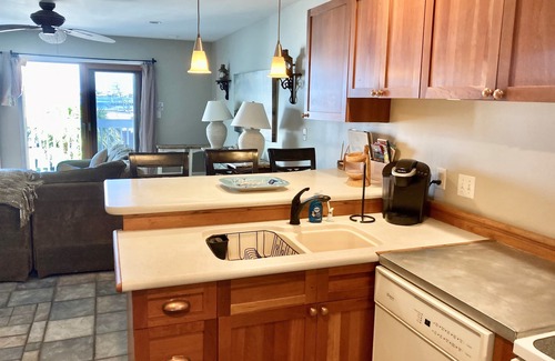 The unit is freshly decorated, antique hardwood and ceramic tile floors and beautifully decorated with maritime copper lighted lamps, vintage bathroom vanities, an antique armoire, a hand-painted sink, vintage wooden accents throughout the entire condo. The unit has a large (8'x 24') furnished balcony overlooking the water and boasts a panoramic view of the pool, grounds, Ono Island and Old River. Several State Park beaches are located nearby both East and West of the condo within walking distance. Nearby beach PARKS include new bathrooms, showers, covered picnic areas, and boardwalks.