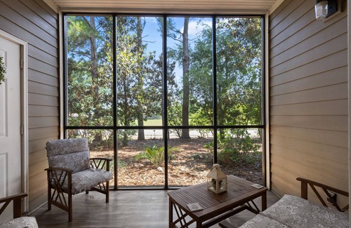 This beautifully updated 3bedroom/2 bath, ground floor condo sleeps 6 people and has a fully stocked kitchen with new dishes, silverware and pots and pans. Our condo offers very comfortable bedding, fresh new towels and linens and dining room seating for 6! We also have large screen smart tv's. You can also sit and relax and enjoy your favorite beverage on the shaded and quiet screened in patio.