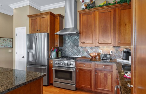 This house is perfect for families and gatherings of friends - with all 4 bedrooms having their own private bath, and all bedrooms have a television. There are two bikes for the renters' use. Books and games are also available. There is a gas grill for renter's use. And an extra refrigerator on the porch for your storage needs.