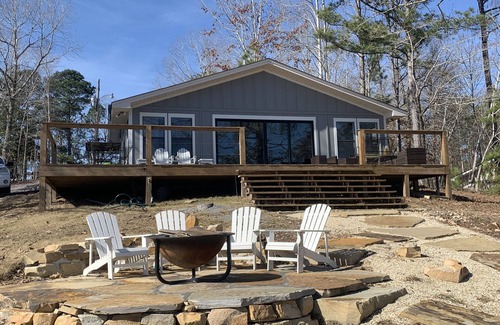 Only a couple of miles off Hwy 280, Point Pleasure (a play off our original lake place at the old Pleasure Point) is easily accessible for Auburn Football and only minutes from Alexander City. Enjoy our 1960’s renovated cabin with new beds, remodeled bath, new deck and dock. Great room and kitchen are open plan with a great view of the water.