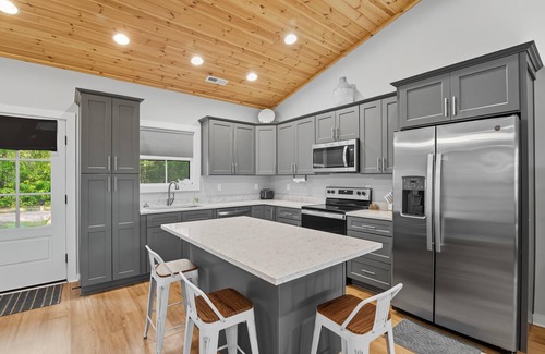 Welcome to Rockshore Escape, where family fun meets lakefront luxury on the stunning Smith Lake in Alabama. This charming cabin is designed with families in mind, offering a perfect blend of comfort, adventure, and relaxation. The cabin comfortably sleeps up to nine guests in its three cozy bedrooms and two bathrooms. The fully equipped kitchen makes meal preparation a breeze, and the inviting living area is perfect for family gatherings. Step onto the large private dock, where kayaks and a paddle board await your aquatic adventures. The expansive porch is an entertainer's dream, featuring a smart TV, plenty of seating, and a water mister(coming soon) to keep you cool on hot days. Fire up one of our grills—Blackstone, gas, or charcoal—for a family barbecue, and as the sun sets, gather around the fire pit for stories and s'mores under the stars. For those who love to relax, the deck offers breathtaking views of the lake, ideal for morning coffee or evening cocktails. After a day of swimming or boating, rinse off in the convenient outdoor shower. The property also includes a hammock and various outdoor games including corn hole, ping pong, and giant jenga, ensuring there's never a dull moment. Smith Lake is one of Alabama's most beautiful and cleanest lakes, with over 500 miles of shoreline to explore. Whether you're into boating, fishing, swimming, or simply soaking up the sun, Rockshore Escape provides the perfect base for your family vacation. Imagine your children laughing as they paddle across the lake, or the whole family enjoying a movie night on the porch. At Rockshore Escape, these moments become cherished memories. Don't miss out on this unique opportunity to experience the best of Smith Lake. Book your stay today and let the fun begin!