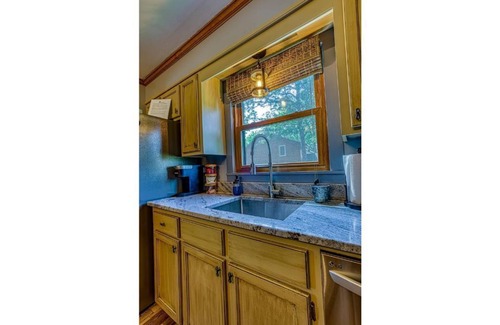 “Stayawhile" cabin offers over 1400 sq ft including large uniquely decorated and cozy great room with 75" high-definition TV with surround sound. The great room opens up to a well appointed eat-in kitchen with all new appliances including an induction cooktop, top of the line Le Creuset cookware, a Keurig, and all matching tableware and glassware. The main bedroom boasts a wrought iron king size bed with pillow top mattress and adjoining full bath.