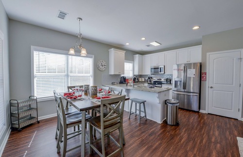 The brand new and adorable home has 3 bedrooms and 2.5 bathrooms and can sleep up to 9 guests. The property is located 2.7 miles north of Bryant Denny Stadium in Historic Downtown Northport. The living room, dining room, and kitchen are all open to each other and there is ample seating for everyone to gather around and enjoy. The kitchen is well stocked with everything you need to create a home cooked meal or tailgate treats! There is also coffee starter pack to keep the whole group caffeinated.